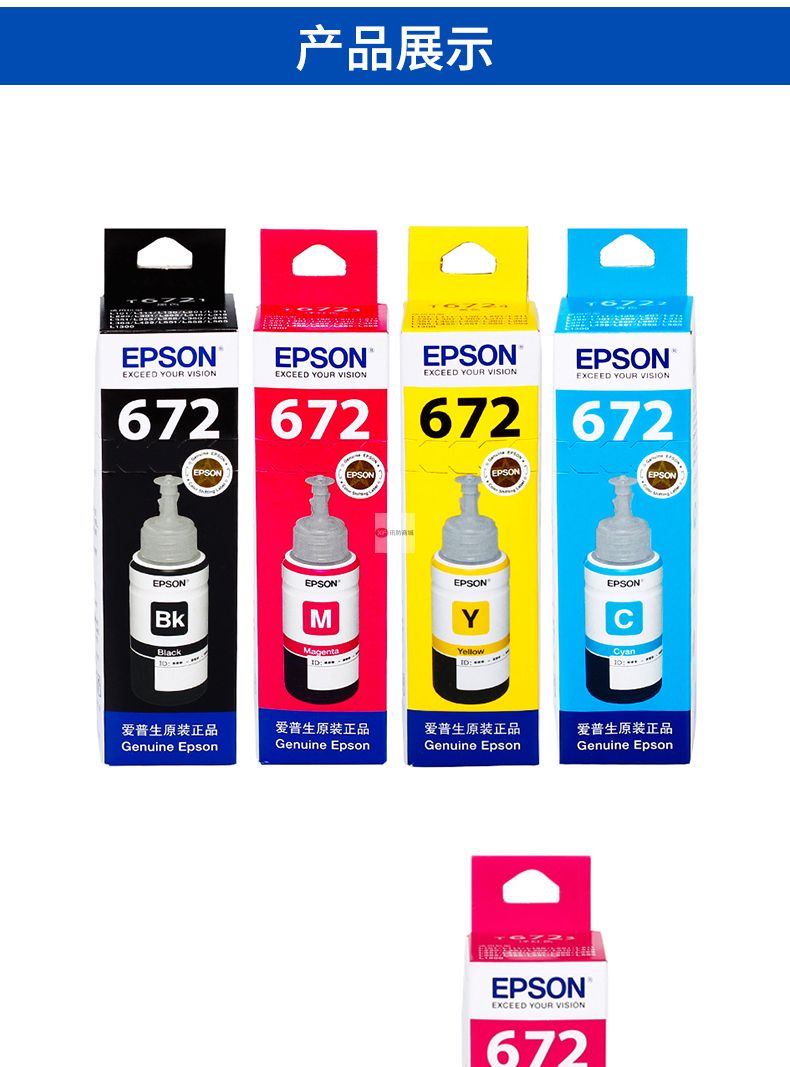 商品名稱:愛普生T6721原裝墨水L380 L385 L485 L551 L1300 L360 L220打印機 T672愛普生原裝黃色墨水