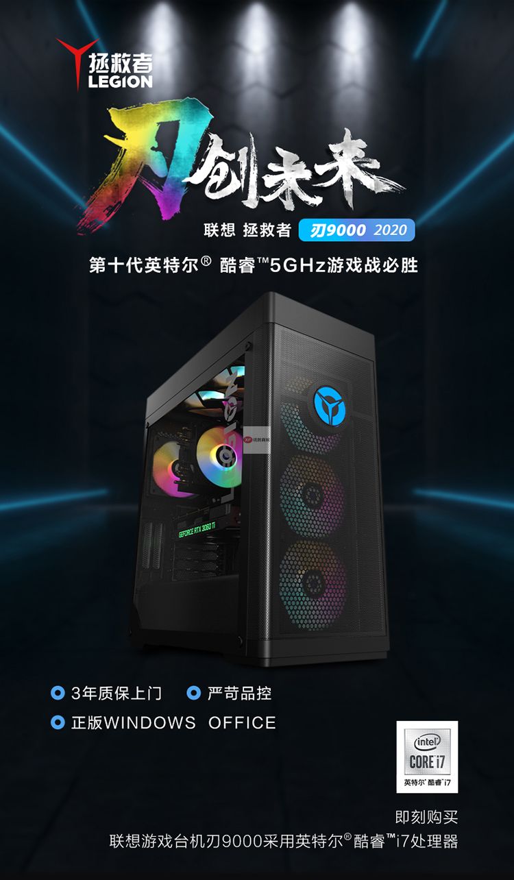 自營聯(lián)想(Lenovo)拯救者刃9000 2020十代英特爾酷睿i7游戲電腦主機(i7-10700K RTX3060Ti 16G 512G ARGB側(cè)透)