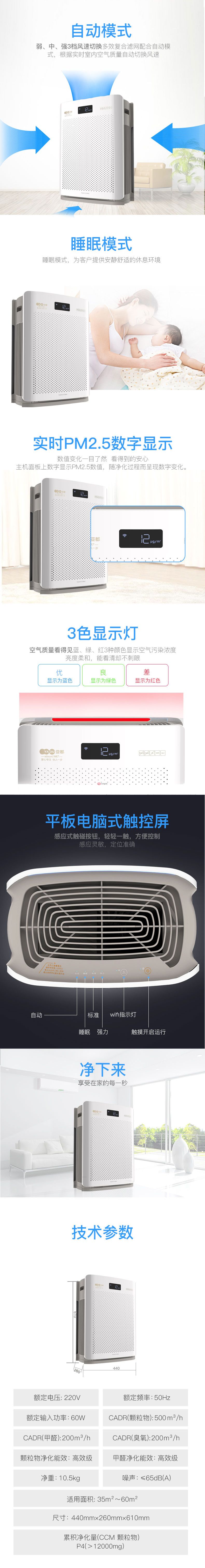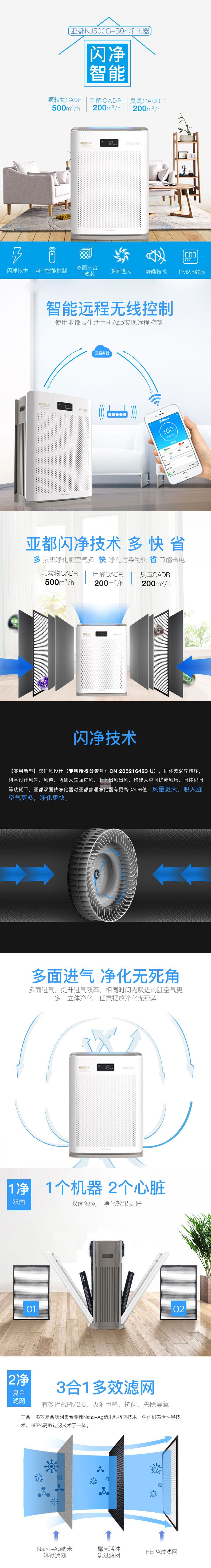自營(yíng)亞都(YADU)KJ500G-B04 空氣凈化器 610*440*260(mm)