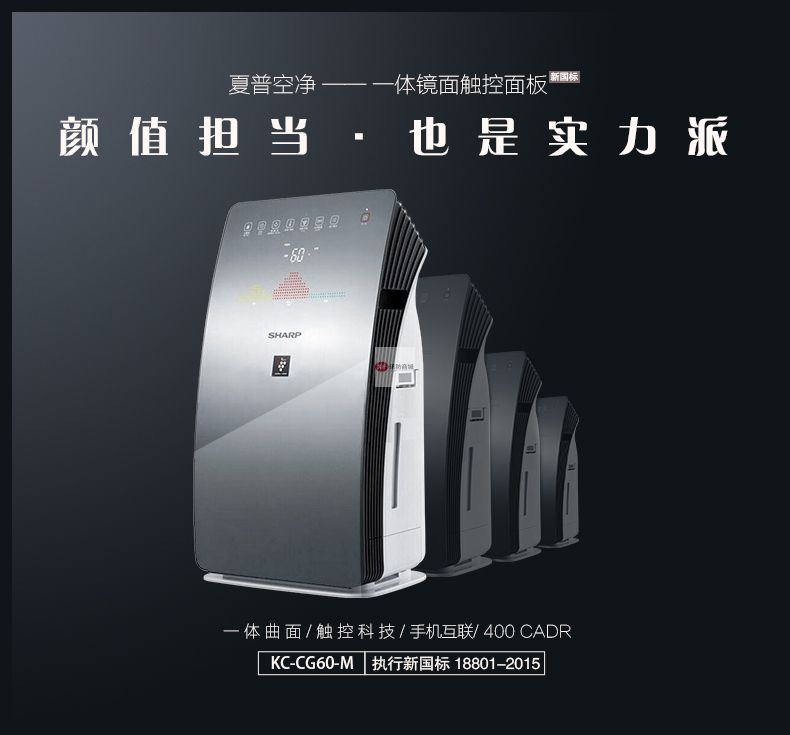 自營夏普KC-CG60-M 空氣凈化器 除甲醛PM2.5霧霾異味花粉加濕智能互聯辦公室除煙塵