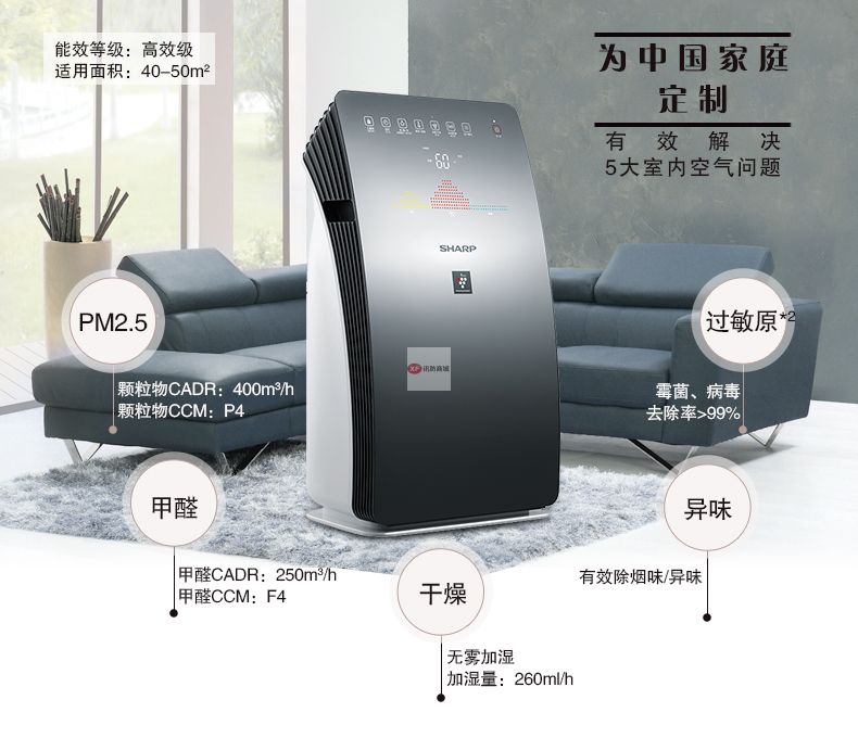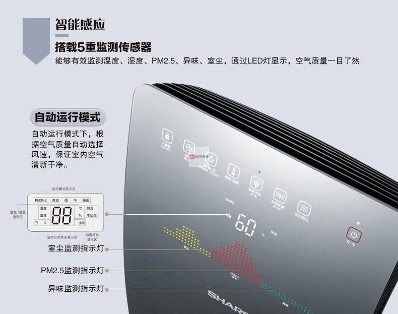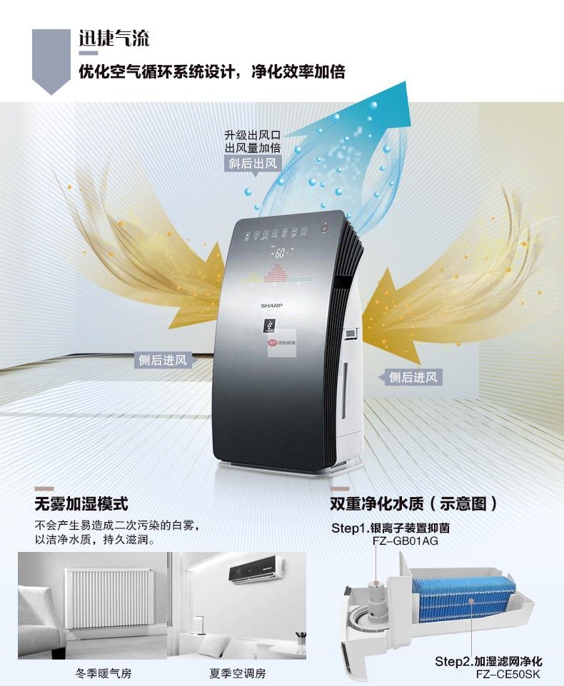 商品名稱:夏普KC-CG60-M 空氣凈化器 除甲醛PM2.5霧霾異味花粉加濕智能互聯辦公室除煙塵