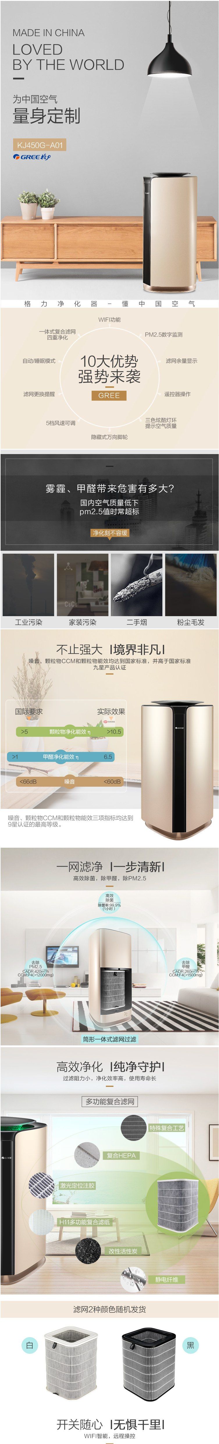 商品名稱:格力(GREE)KJ450G-A01 空氣凈化器 家用除霧霾PM2.5除甲醛除細(xì)菌智能wifi 遙控雙控制