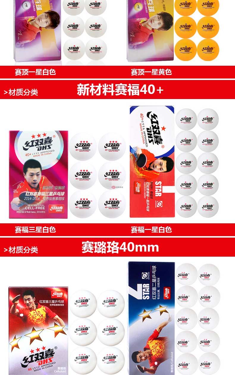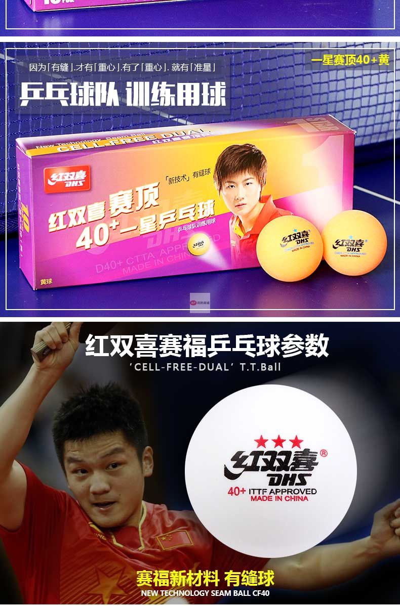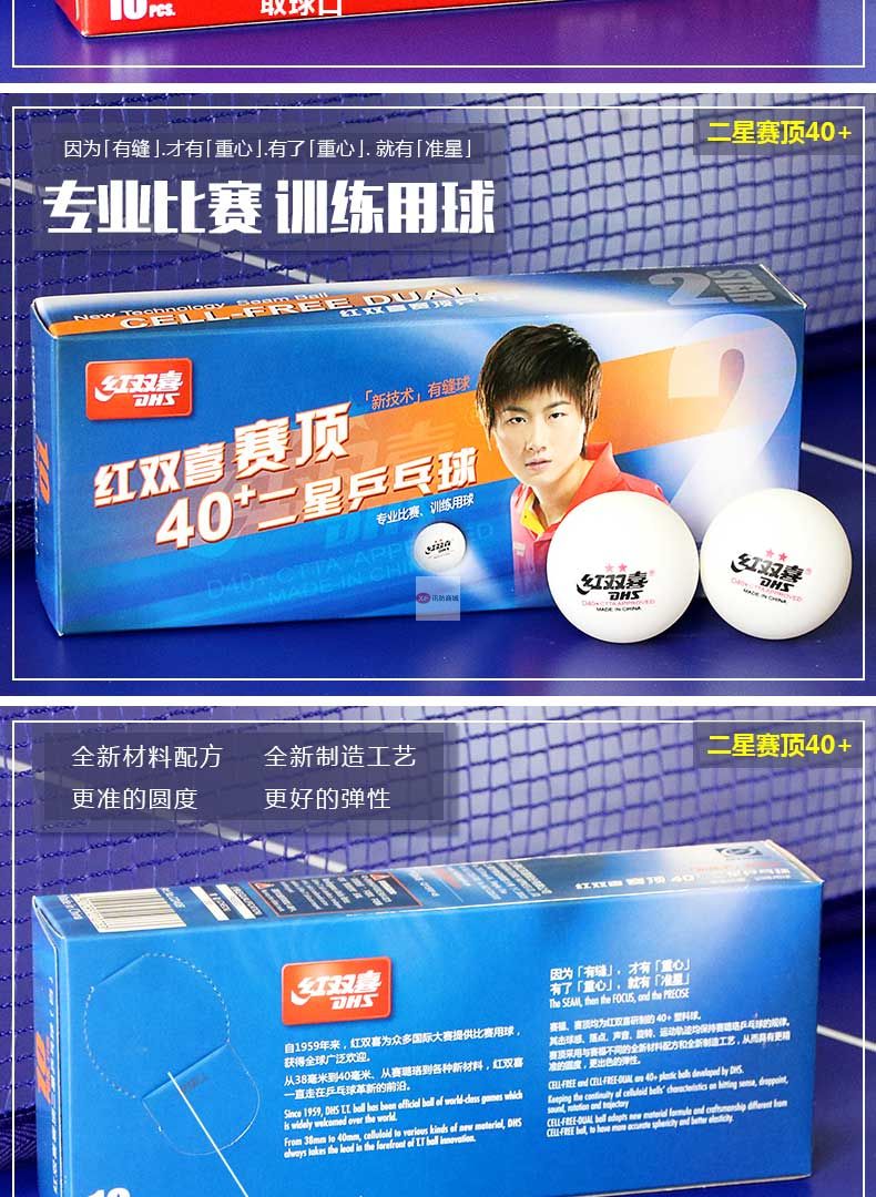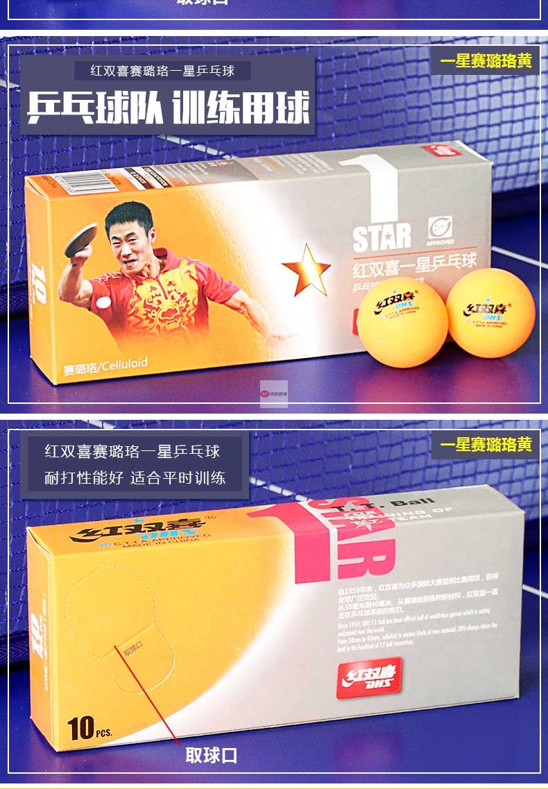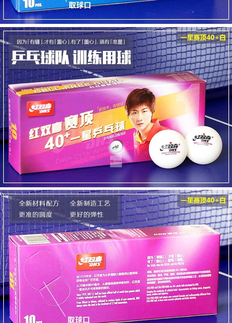 商品名稱:紅雙喜乒乓球三星級一星二星比賽訓練用球40+白黃色 ppq正品40mm 一星40+賽頂10只盒裝(白色)