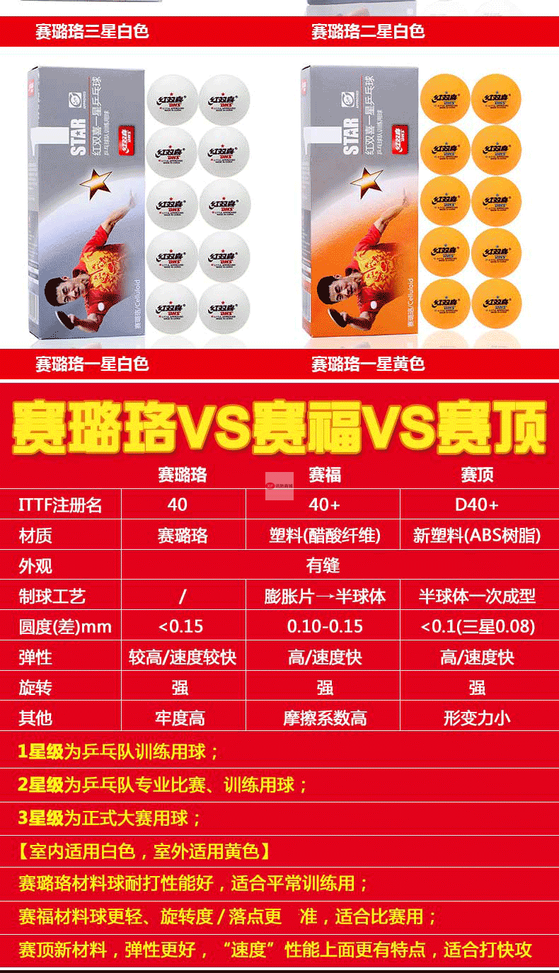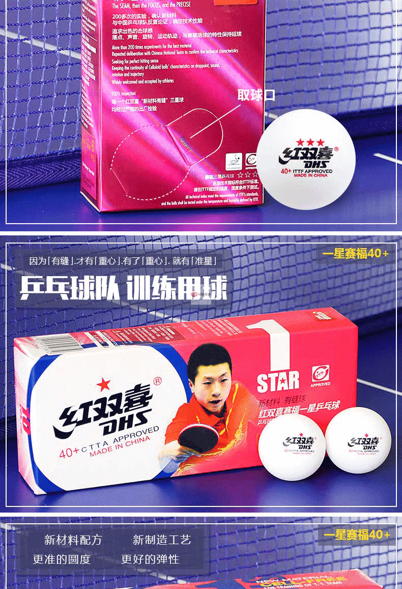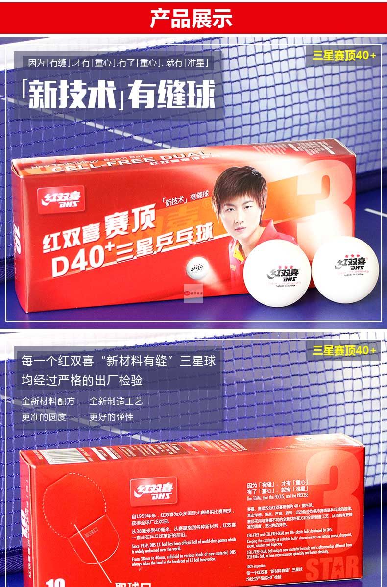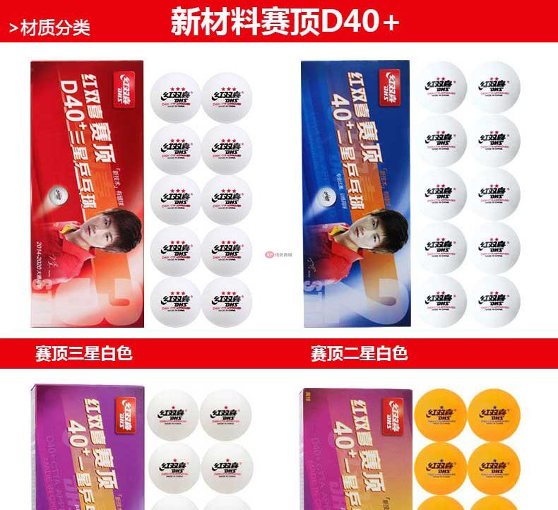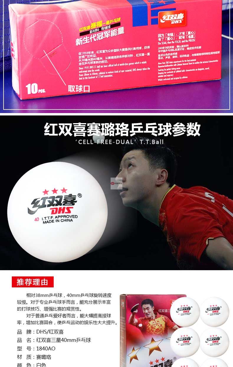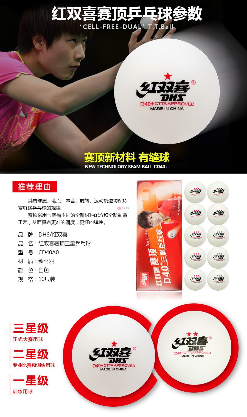 商品名稱:紅雙喜乒乓球三星級一星二星比賽訓練用球40+白黃色 ppq正品40mm 一星40+賽頂10只盒裝(白色)