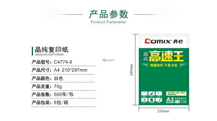 商品名稱:齊心(COMIX)高速王復(fù)印紙 a4打印紙 500張/包 70g A4 單包(500張)