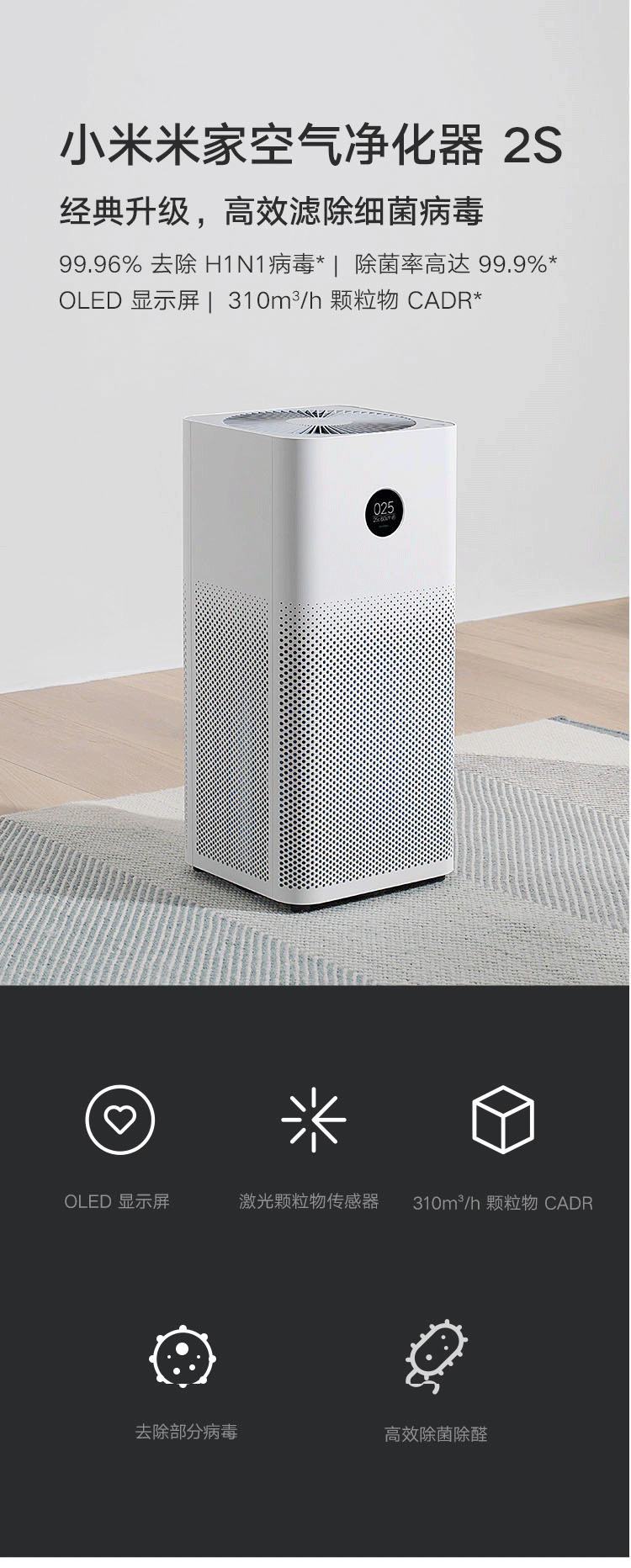 商品名稱:米家 小米空氣凈化器2S 家用除甲醛除煙味PM2.5 靜音設(shè)計(jì) 智能互聯(lián) AC-M4-AA 29W