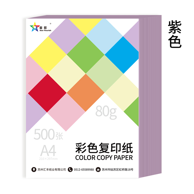 自營星旺 彩色復(fù)印紙 80克 A4 500張/包 紫色