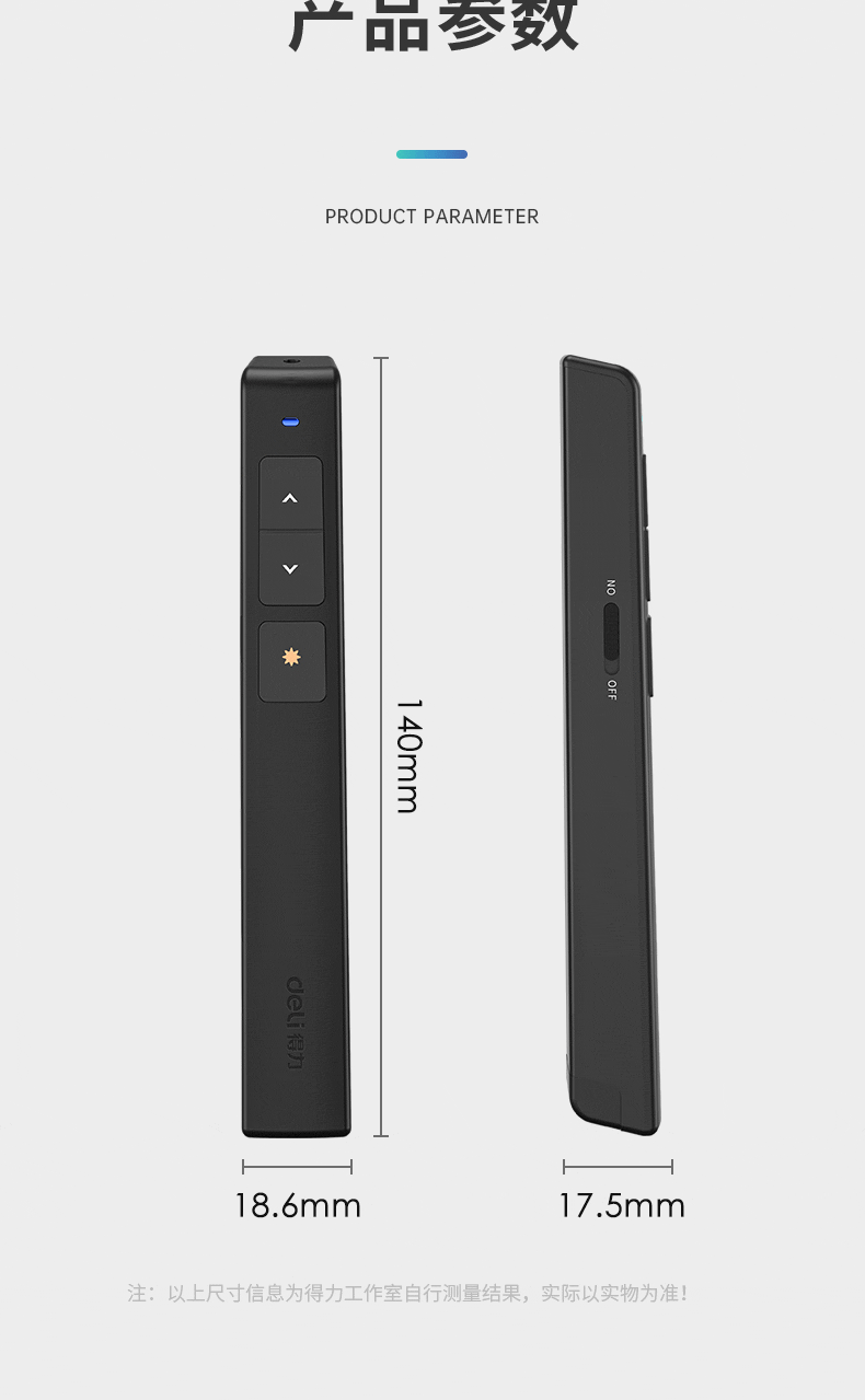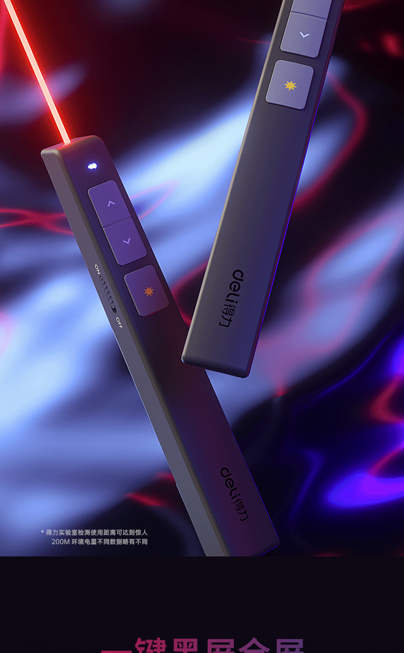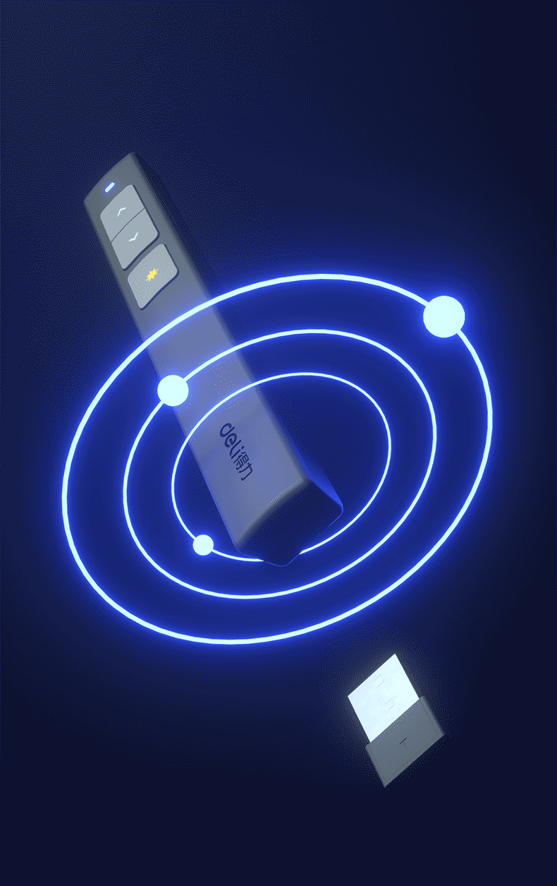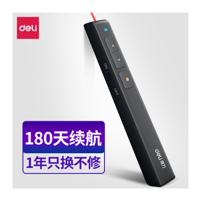 商品名稱:得力(deli)360度控制教師專用PPT投影筆激光翻頁(yè)筆教鞭電子筆演講筆 無線演示翻頁(yè)器課件筆 紅光 黑色2802