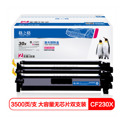 商品名稱:格之格CF230A粉盒大容量雙支裝不含芯片適用惠普M203dn M203dw M227fdn M227fdw打印機硒鼓