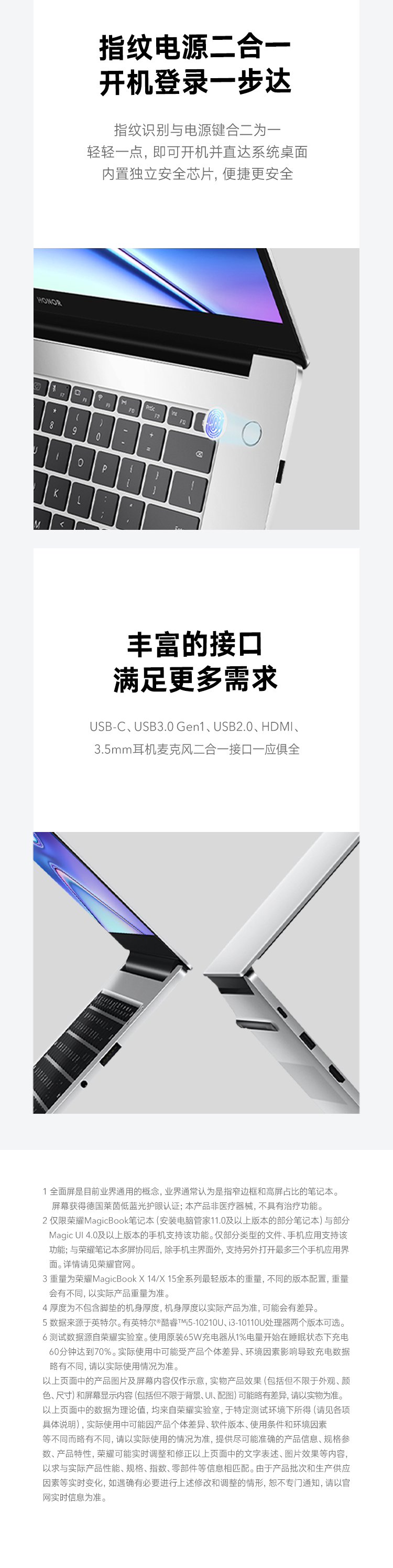 自營榮耀筆記本 MagicBook X 15 2021 15.6英寸全面屏輕薄筆記本電腦 (i5 10210U 8GB 512GB多屏協(xié)同)冰河銀