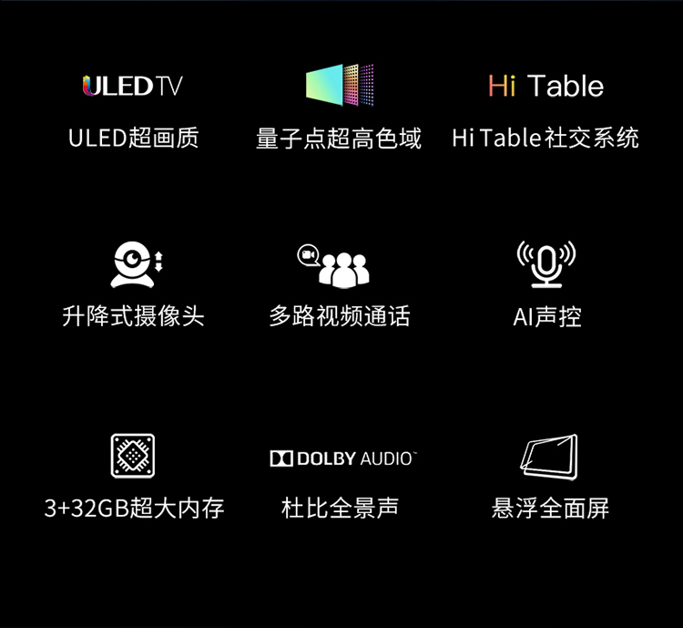 商品名稱:海信(Hisense)55E8D 社交電視 HiTable 55英寸 ULED 量子點(diǎn) AI聲控 懸浮全面屏 教育 電視機(jī)