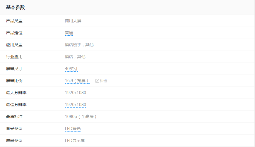 • 屏幕尺寸:40英寸