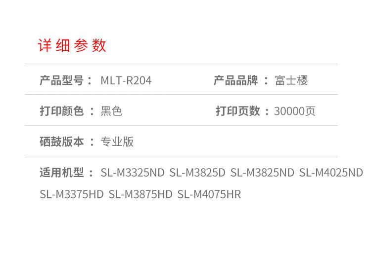 商品名稱(chēng):富士櫻(FUSICA)R204黑色硒鼓組件 適用三星SL-M3325 M3825 M4025 M3375 M3875 M4075