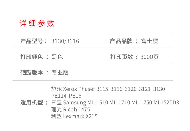 商品名稱:富士櫻(FUSICA)3130硒鼓 適用施樂Phaser 3130/3120/3115/3121 PE16/114 三星ML1510/1710/1750