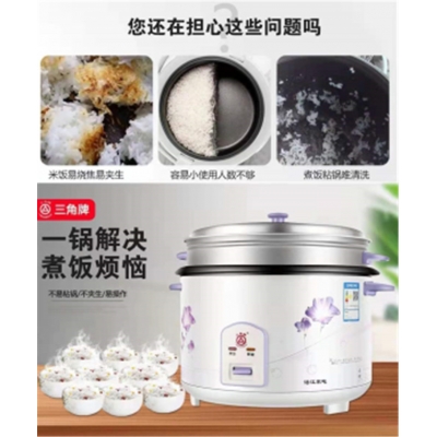 自營三角牌 電飯鍋 HY-125A 18L 不銹鋼內(nèi)膽 機(jī)械大容量 2500W 帶蒸籠 白色