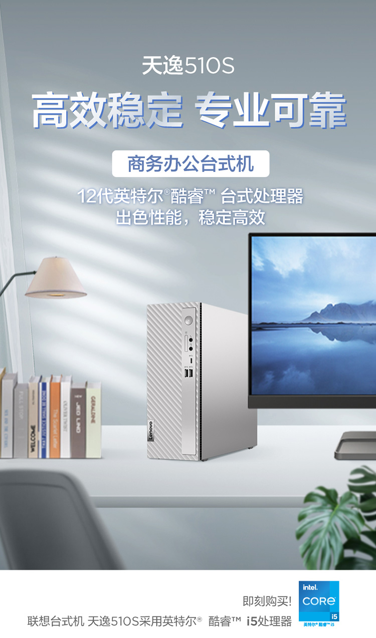 自營聯(lián)想(Lenovo)天逸510S英特爾酷睿i5個人商務(wù)臺式機電腦整機(12代i5-12400 16G 512G SSD win11)23英寸