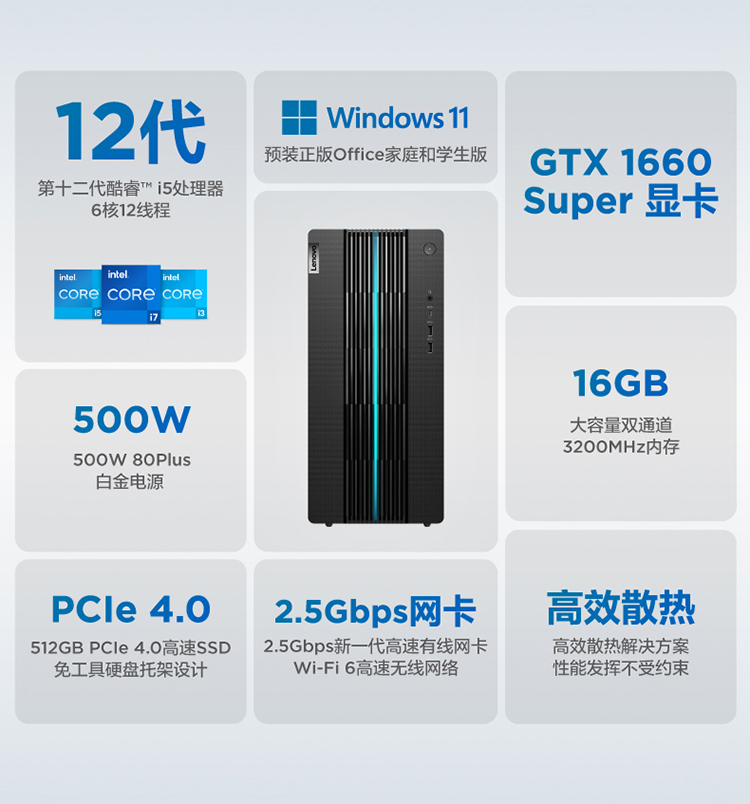 自營聯(lián)想(Lenovo)GeekPro 2022設(shè)計(jì)師游戲臺式電腦主機(jī)(12代i5-12400F GTX1660super 16G 512G SSD )
