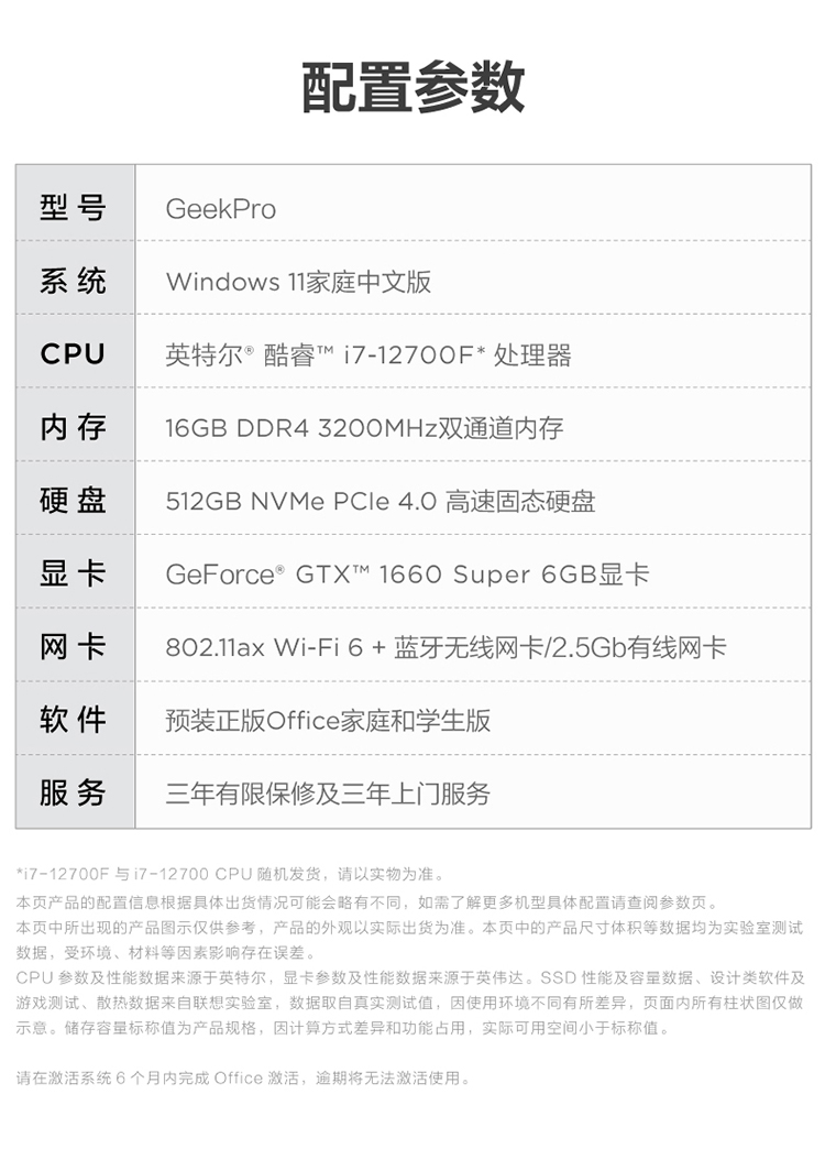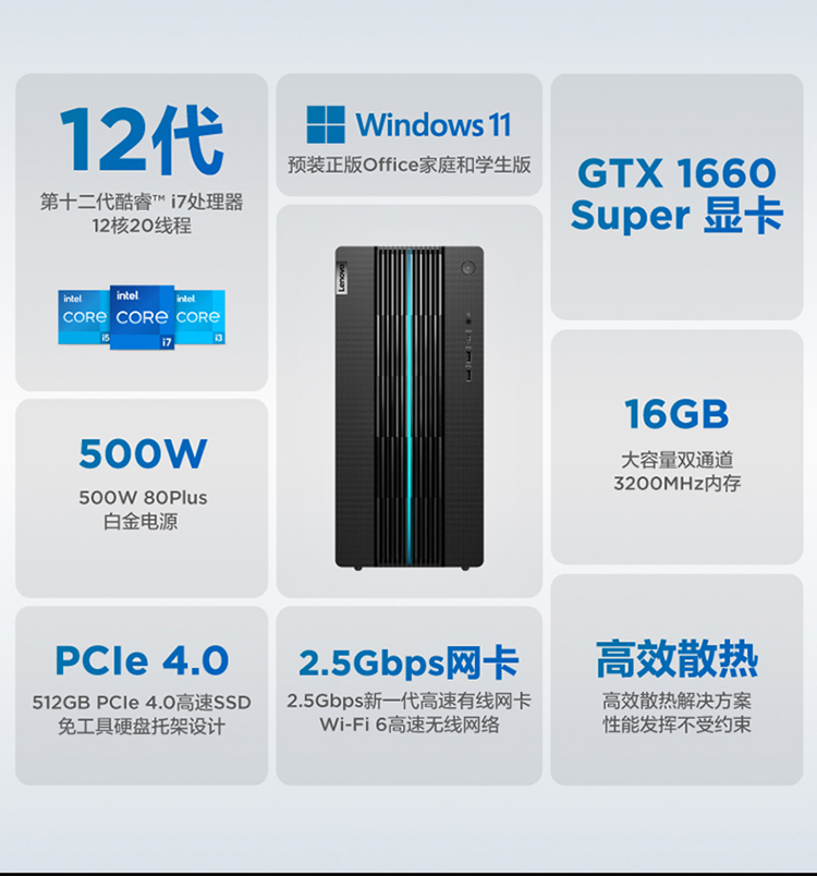 商品名稱:聯(lián)想(Lenovo)GeekPro 2022設計師游戲臺式電腦主機(12代i7-12700F GTX1660super 16G 512G SSD )