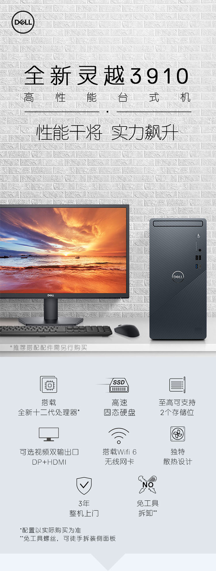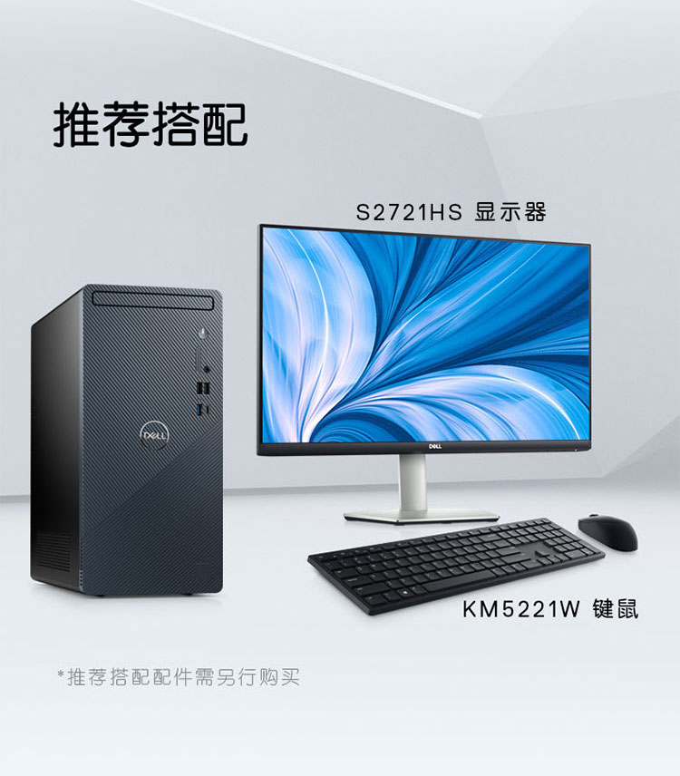 自營戴爾DELL靈越3910 家用辦公電腦 商務(wù)臺式機電腦主機(12代i5-12400F 8G 256G+1T 2G獨顯 )27英寸整機