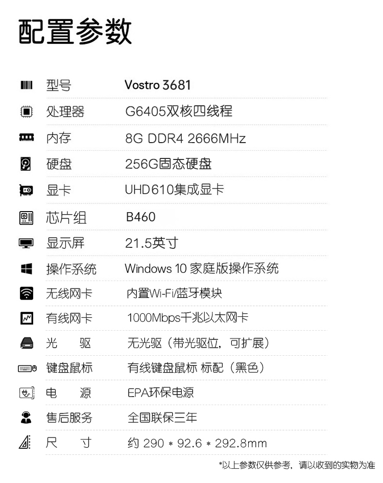 商品名稱(chēng):戴爾(DELL) 成就3681 辦公商用家用臺(tái)式電腦 全套整機(jī)迷你小主機(jī)3710同款外觀 主機(jī)+21.5英寸顯示器 英特爾G6405 8G 256G固態(tài)