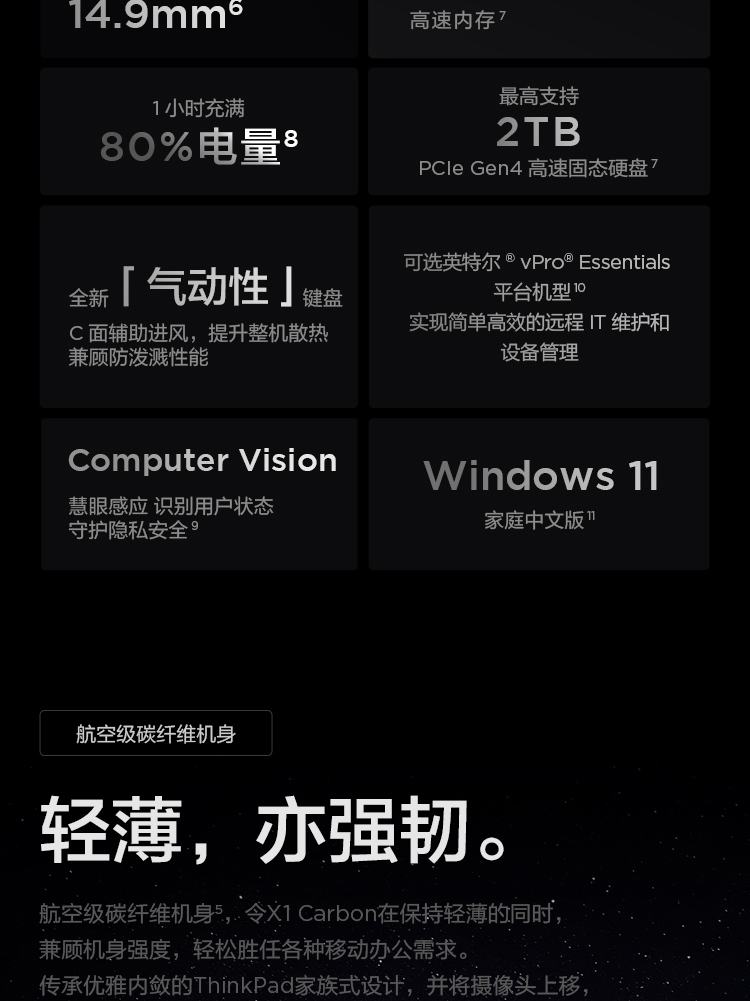 商品名稱:ThinkPad X1 Carbon 2022款12代英特爾酷睿處理器14英寸高端商務(wù)輕薄筆記本電腦 12代i5 16G 512G 02CD 2.2K屏