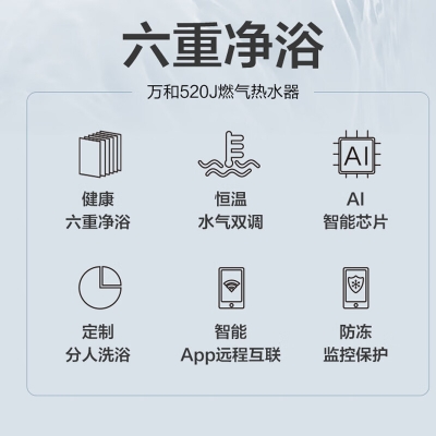 商品名稱:萬(wàn)和(Vanward)16升燃?xì)鉄崴魈烊粴飧袦厮畾怆p調(diào)精控恒溫智能防凍保護(hù)6重健康浴JSQ30-520J16