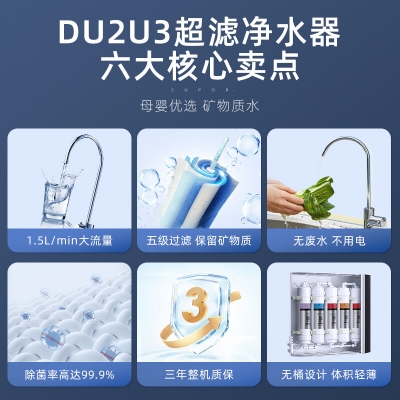 自營蘇泊爾(SUPOR)凈水器家用超濾軟水機濾水器自來水廚下式凈化器DU2U3廚房飲水水龍頭臺式臺上臺下過濾器凈水機