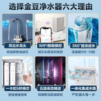 商品名稱:美的(Midea) 家用凈水器廚房直飲過濾器凈水機(jī)RO反滲透過濾母嬰大水量純水機(jī)金豆凈水器 【人氣推薦-雙出水龍頭-更省濾芯】