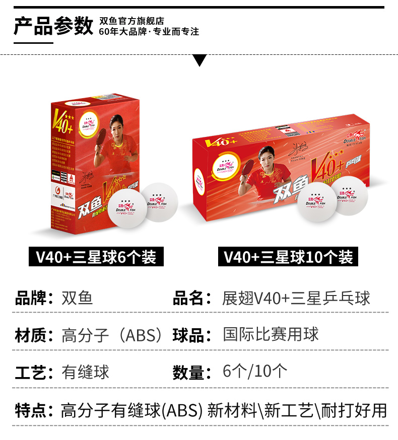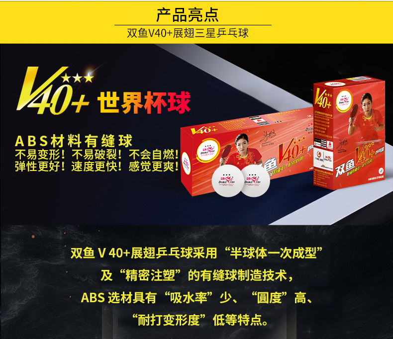 • 型號(hào):雙魚(yú)V40+展翅三星乒乓球