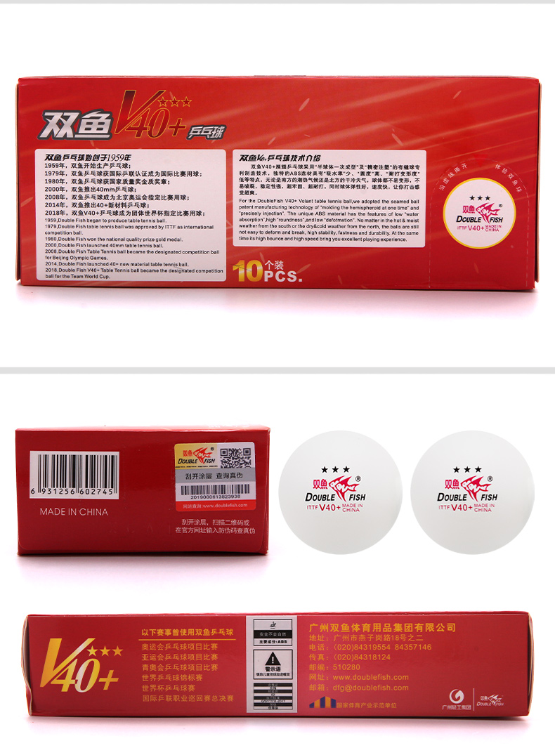 商品名稱: 雙魚(yú)V40+展翅三星乒乓球 ABS新材料 白色10只/盒