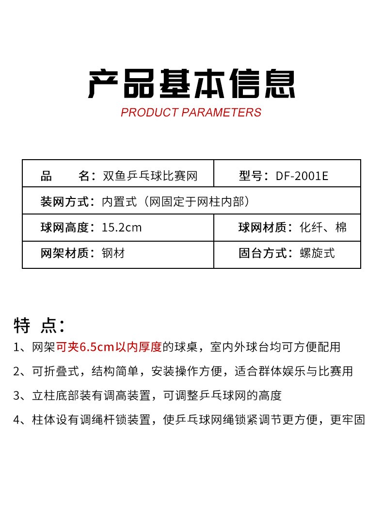 商品名稱:雙魚乒乓球網(wǎng)架套裝2001E6.5cm加厚 深藍色