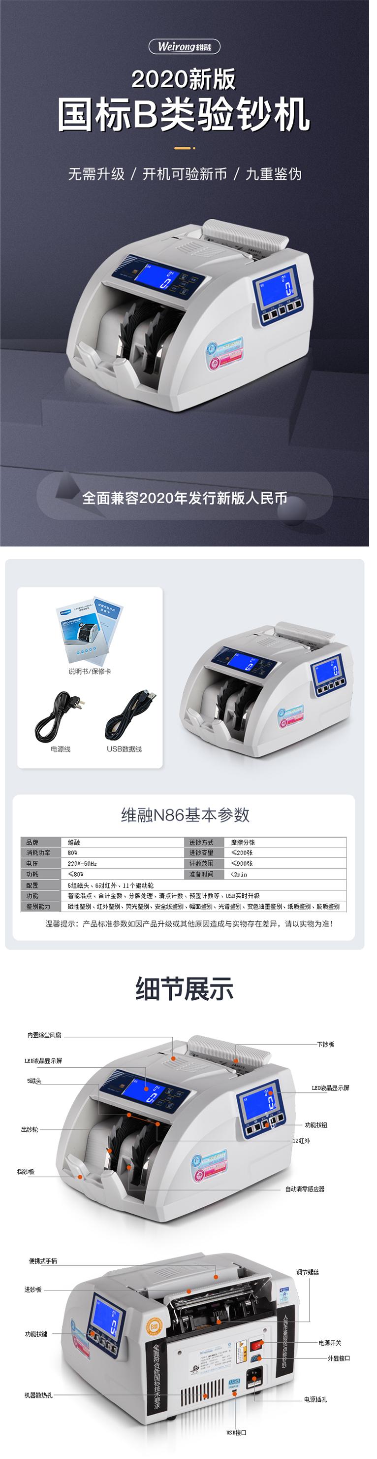 商品名稱:維融(weirong)JBYD-N86(B) 2020年新版人民幣 小型全智能混點驗鈔機