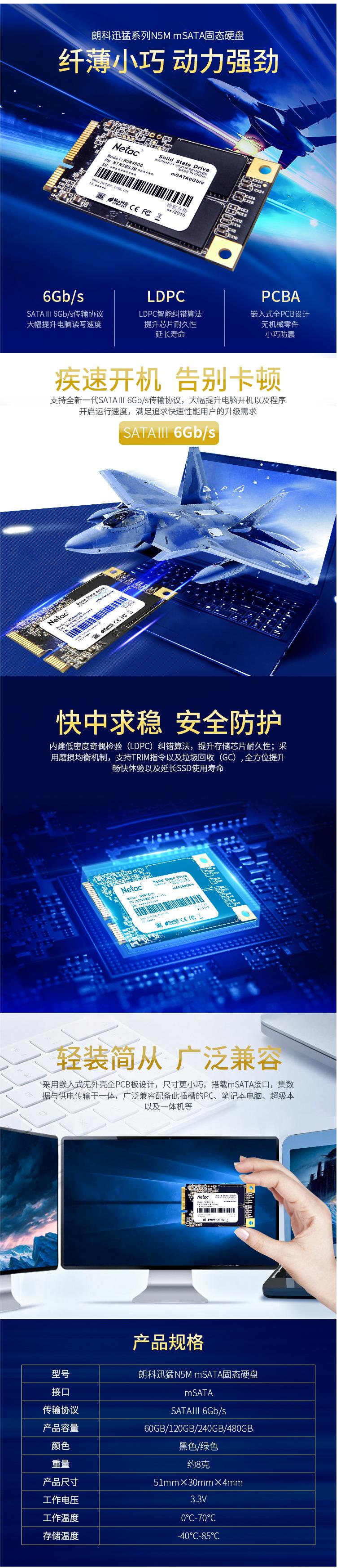 商品名稱:朗科(Netac) N5M 480GB 固態(tài)硬盤 MSATA3.0接口 讀速400MB/s 纖薄小巧 動力強勁