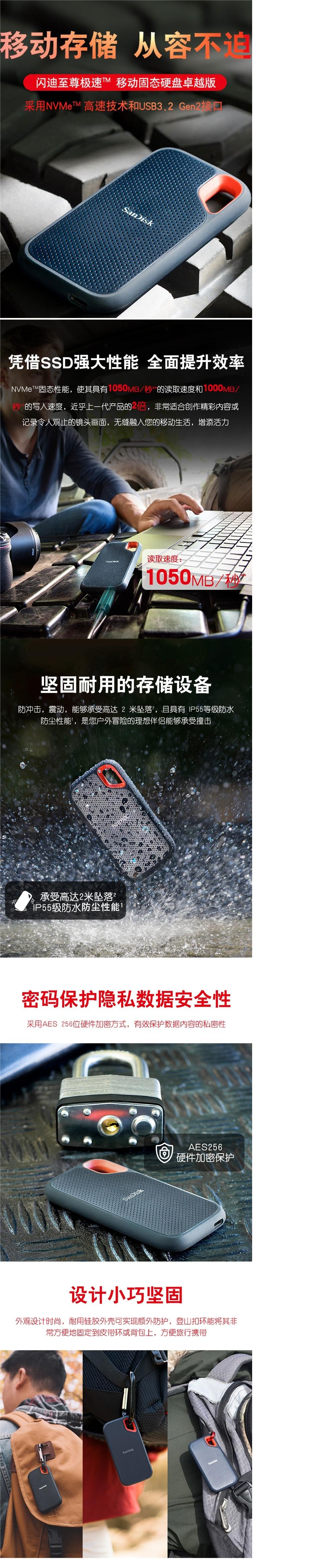 商品名稱:閃迪(SanDisk)2TB Nvme 移動硬盤(PSSD)E61至尊極速卓越版 傳輸速度1050MB/s IP55等級三防保護(hù)