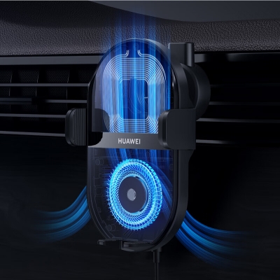商品名稱:華為(HUAWEI)車載充電器 超級快充無線車充手機支架出風口儀表臺導航支架(Max50W)通用版 CK030碳晶黑