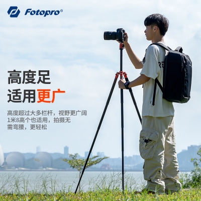 自營富圖寶(Fotopro)空氣三號 雙全景云臺碳纖維相機微單攝影攝像三腳支架 火焰橙 重/0.9KG 手機夾