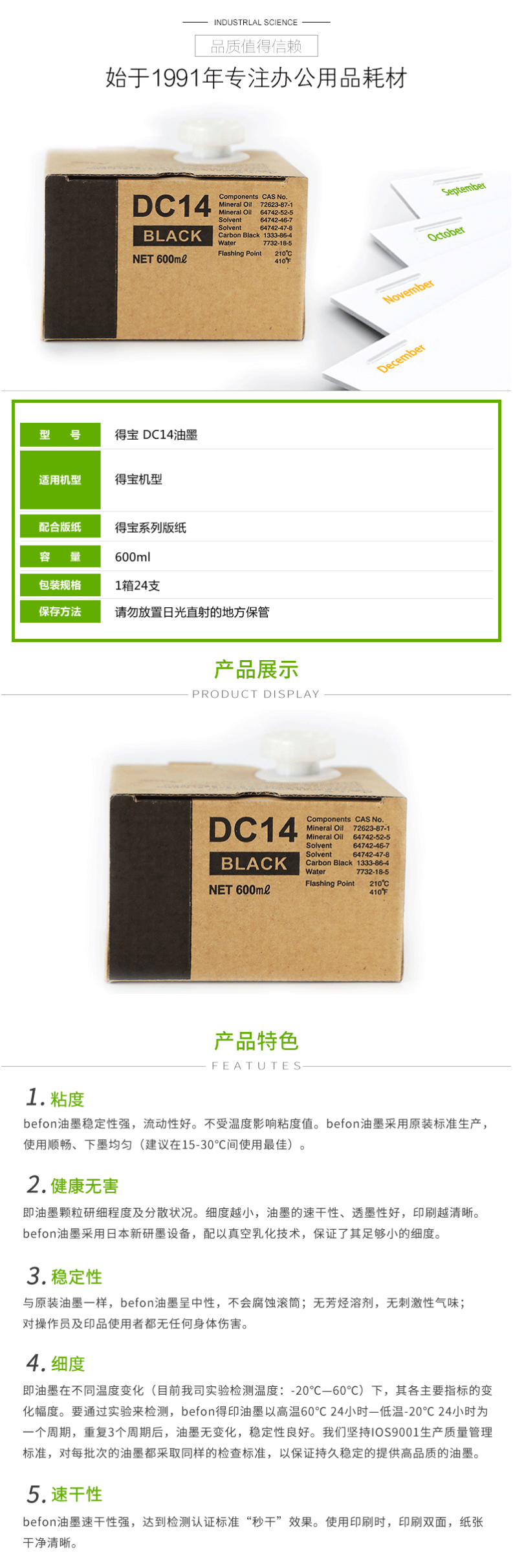 商品名稱:得寶(TEMPO) DC14 一體機油墨 適用 M420 DP 120 125 G320 G325 L525C 油墨