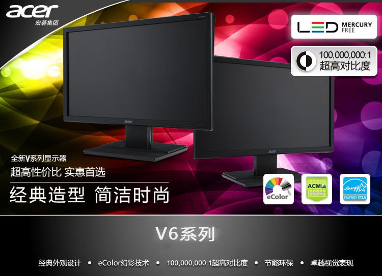 自營宏碁(ACER)V206HQL 顯示器 19.5寸 VGA 1366*768 TN面板 16:9 兩年保修