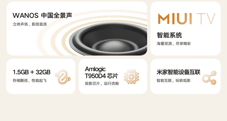 商品名稱:小米Redmi 投影儀2 沙色 家用投影機(jī) 智能家庭影院(1080P物理分辨率 智能避障 自動入幕 自動對焦)