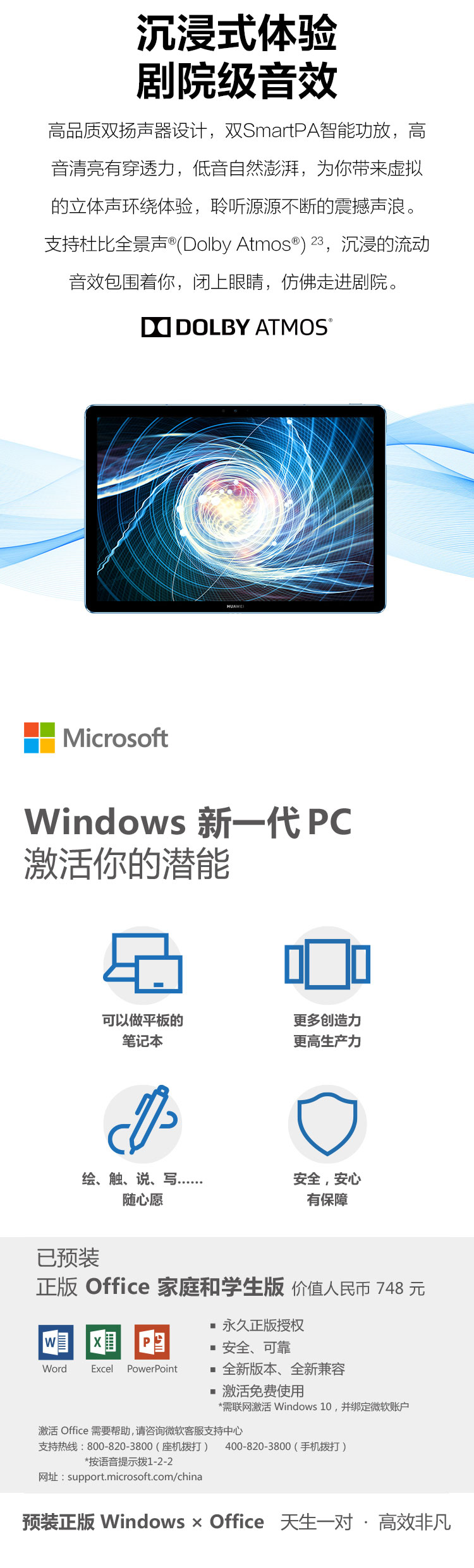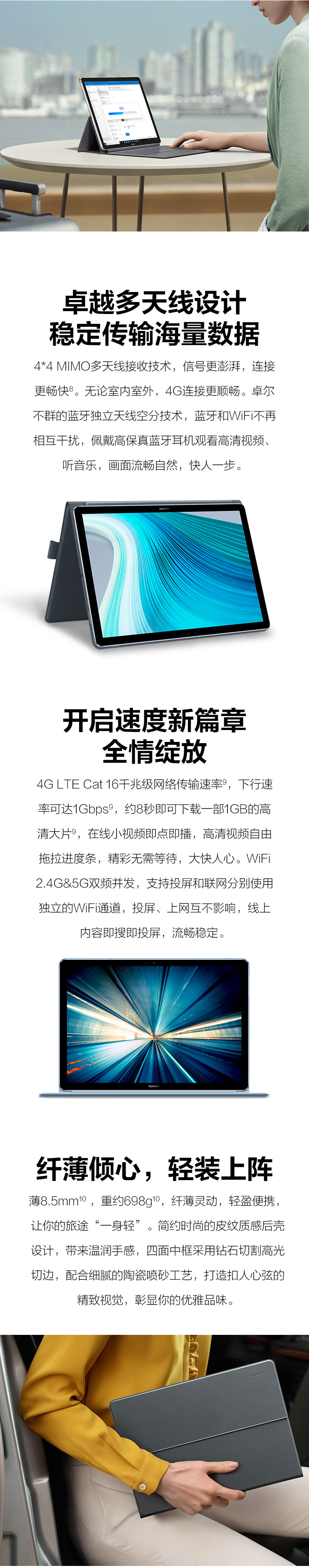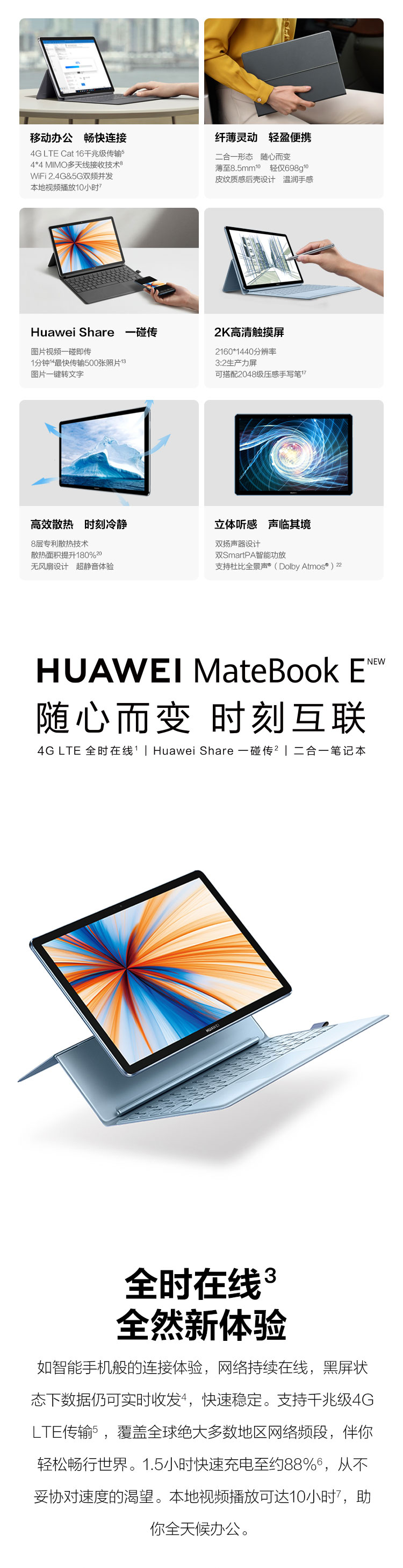 自營華為(HUAWEI) MateBook E 2019款 12英寸全連接輕薄二合一筆記本電腦( 魅海藍(lán) 高通850 8G 512G)