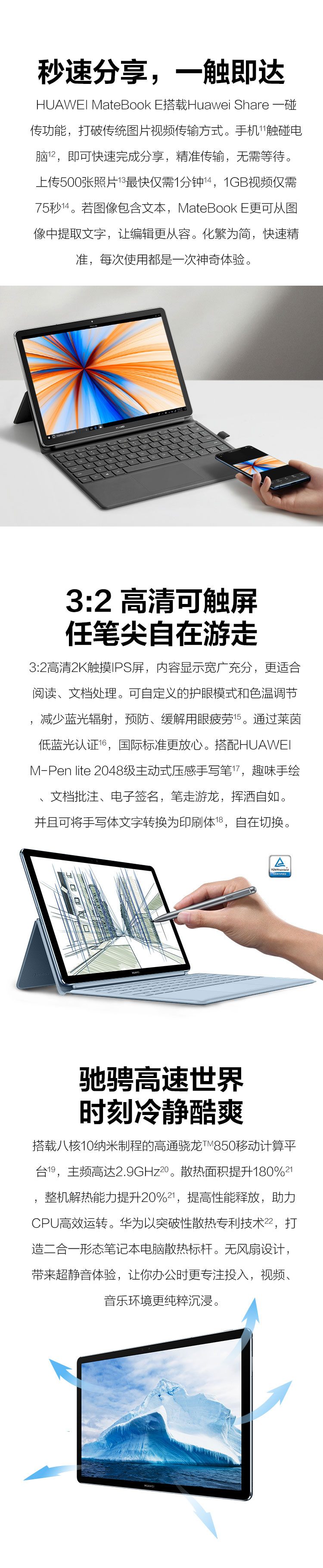 商品名稱:華為(HUAWEI) MateBook E 2019款 12英寸全連接輕薄二合一筆記本電腦( 魅海藍(lán) 高通850 8G 512G)