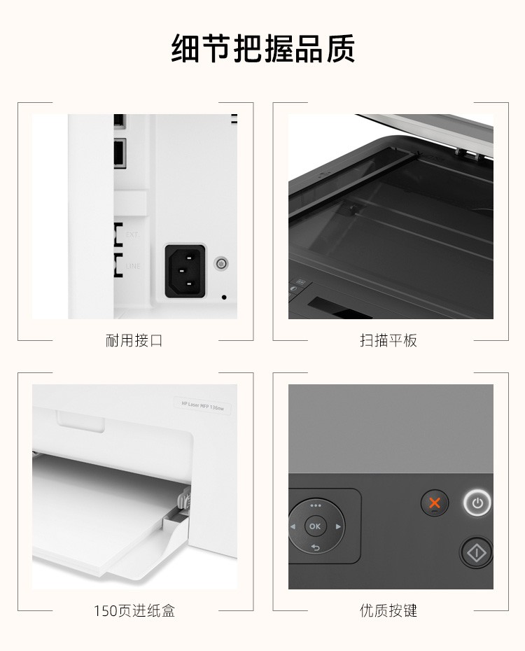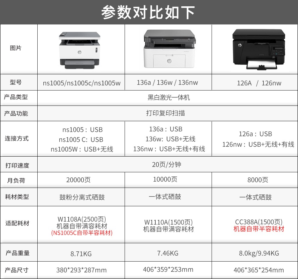 商品名稱:惠普hp 打印機 1005 1136 126a 136nw 30w A4黑白激光 復印 掃描 一體機 136w(升級款無線連接)