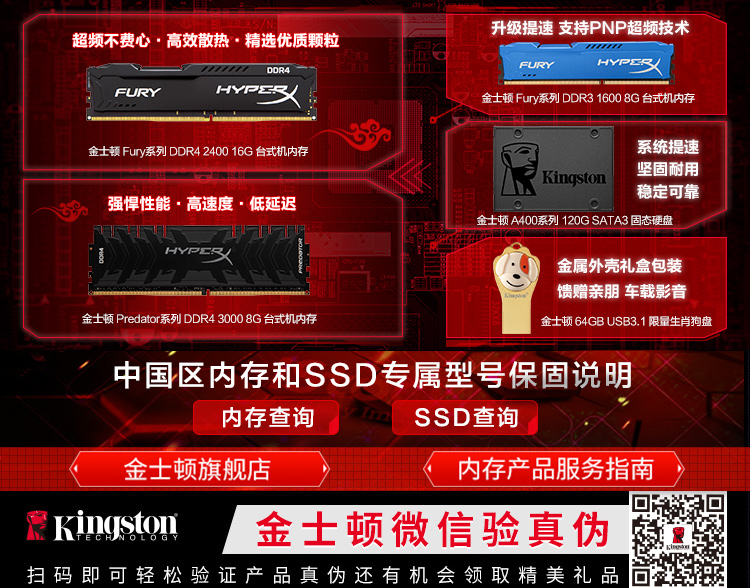 • 商品名稱:金士頓(Kingston)駭客神條 Fury系列 DDR4 2400 16G 臺(tái)式機(jī)內(nèi)存