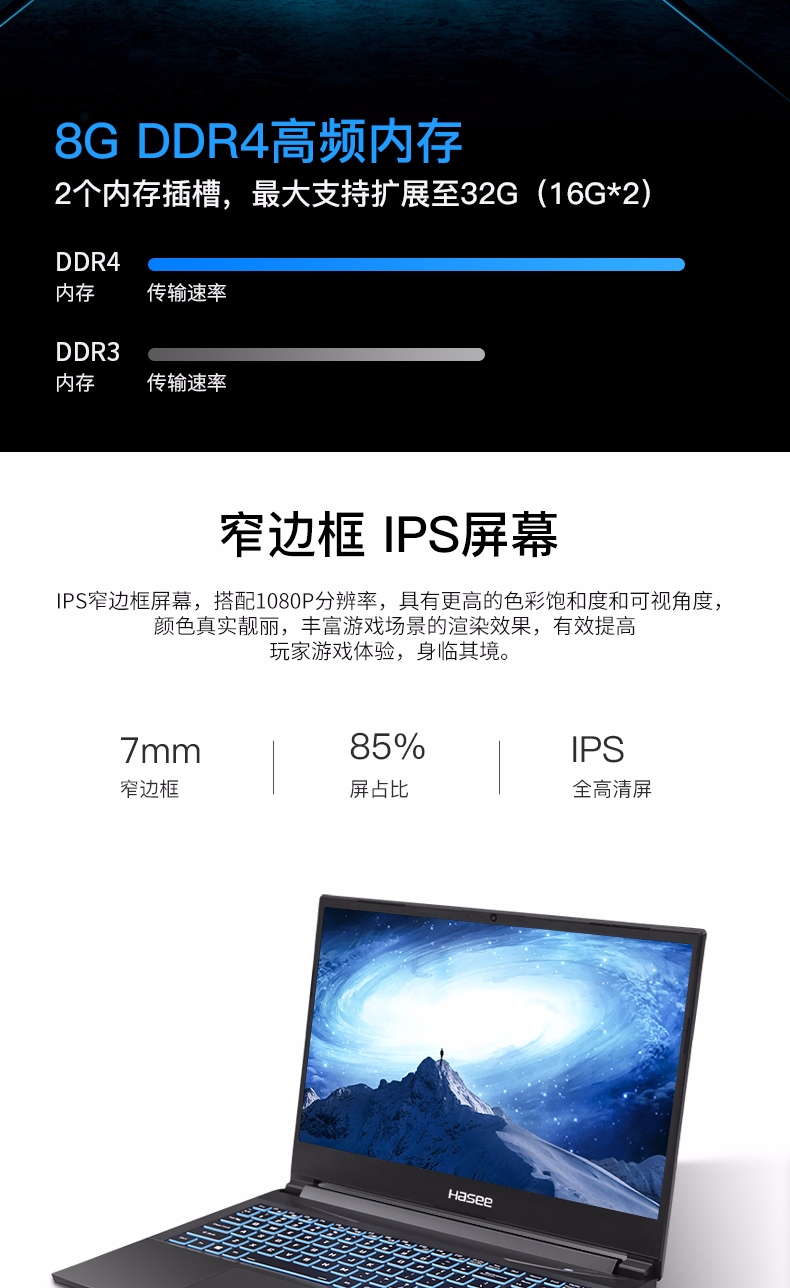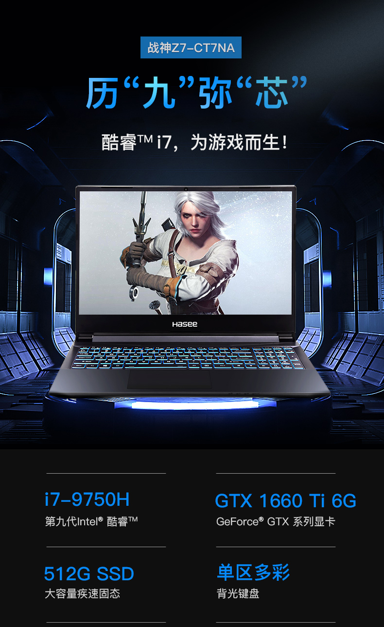 商品名稱:神舟(HASEE)戰(zhàn)神Z7-CT7NA 英特爾酷睿i7-9750H GTX1660Ti 6G獨顯15.6英寸窄邊框游戲筆記本電腦(8G 512G SSD)