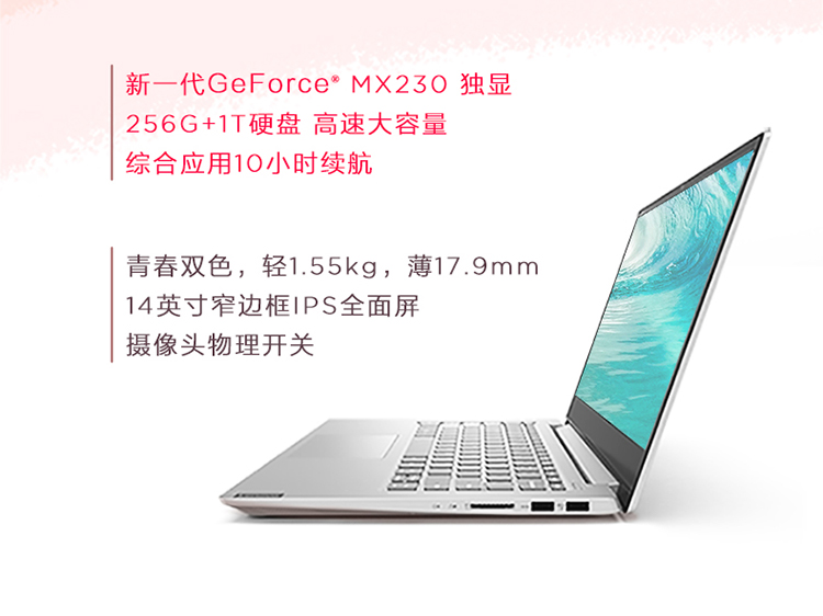 自營聯(lián)想(Lenovo)小新14英寸 英特爾酷睿i5 輕薄窄邊框筆記本電腦(I5-8265U 8G 1TB+256G PCIE MX230 IPS)仙女粉