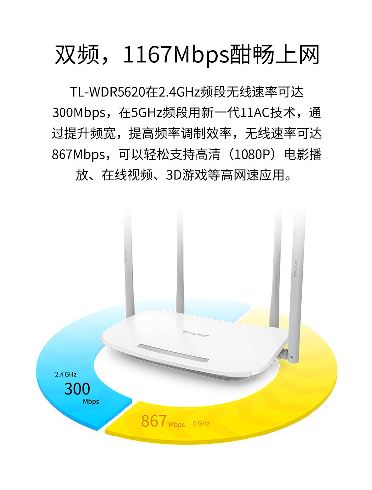 商品名稱(chēng):TP- TL-WDR5620 1200M 5G雙頻智能無(wú)線路由器 四天線智能wifi 穩(wěn)定穿墻高速家用路由器