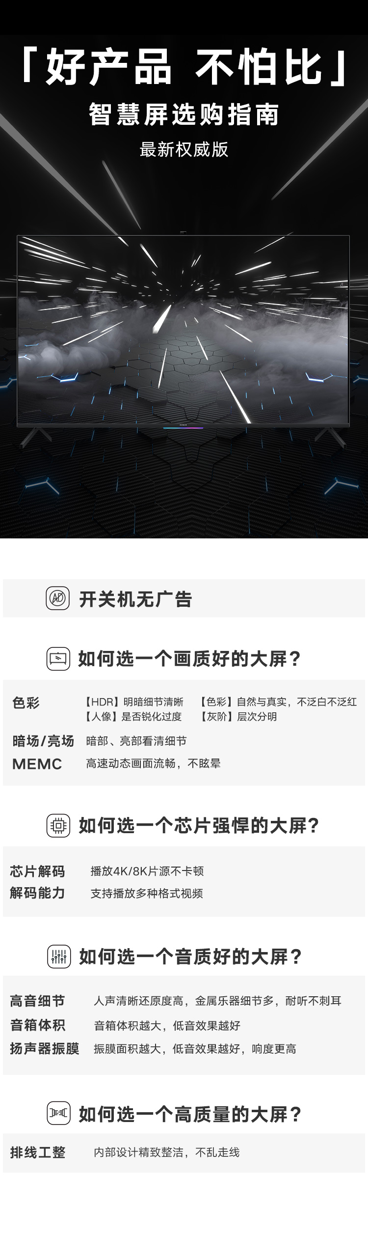 • 電視類型:人工智能,大屏,智慧屏,超薄,4K超清