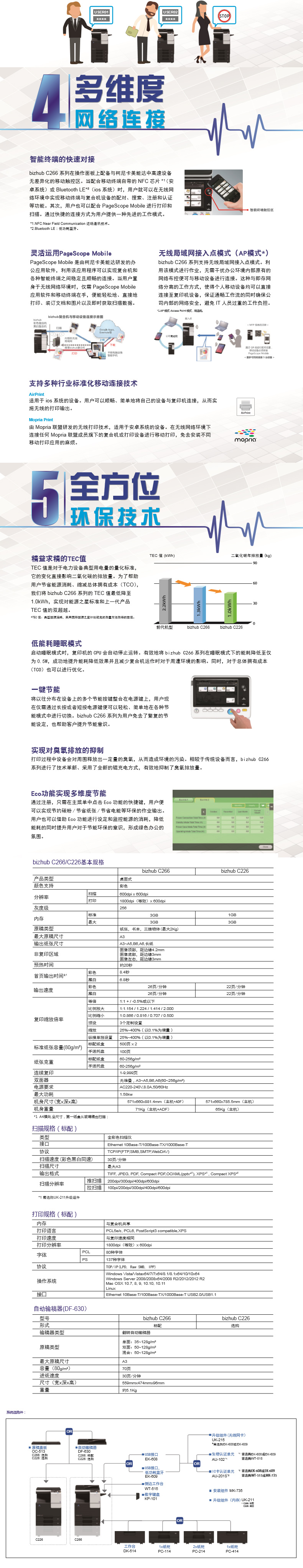 商品名稱:柯尼卡美能達(KONICA MINOLTA)bizhubC226A3彩色復合機22頁/分 打印復印掃描 輸稿器雙紙盒底柜