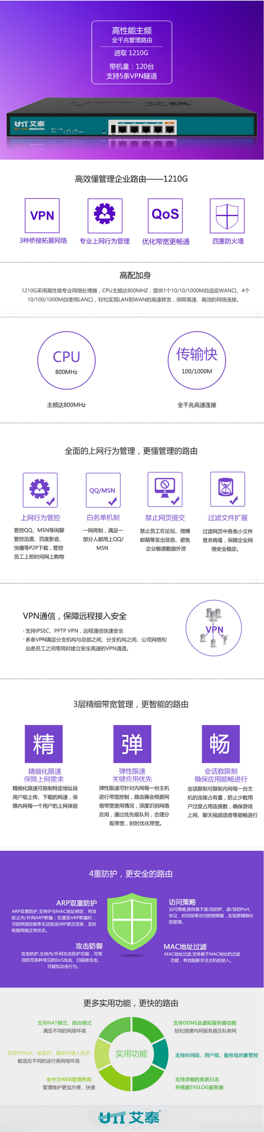 商品名稱:C艾泰(UTT)1210G 全千兆企業(yè)級上網行為管理路由器(帶寬管理/VPN/端口鏡像)